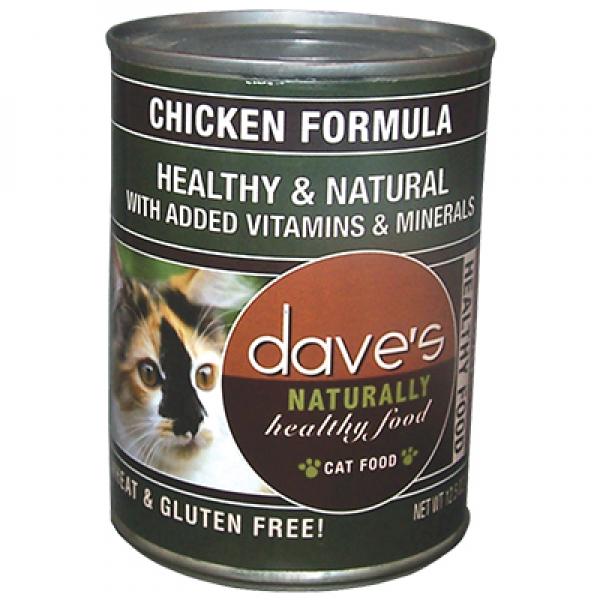 Dave's Pet Food Naturally Healthy Chicken 12.5oz canned cat food grain-free wet food is made with chicken and turkey as the top ingredients for animal sourced protein to support healthy muscles. This can is packed with essential vitamins and minerals for overall health, and taurine to support healthy eyes and a healthy heart. Provides a complete and balanced diet for all breeds, on its own or as a tasty kibble topper.