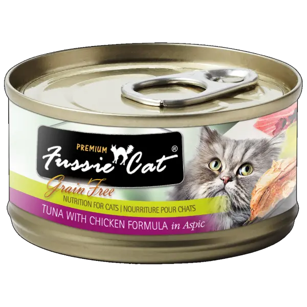 Fussie Cat Premium cat food is made in a high-quality food manufacturing plant. The ingredients help to promote healthy digestion and a balanced diet for your feline friend. Fussie Cat Premium is a grain-free food.