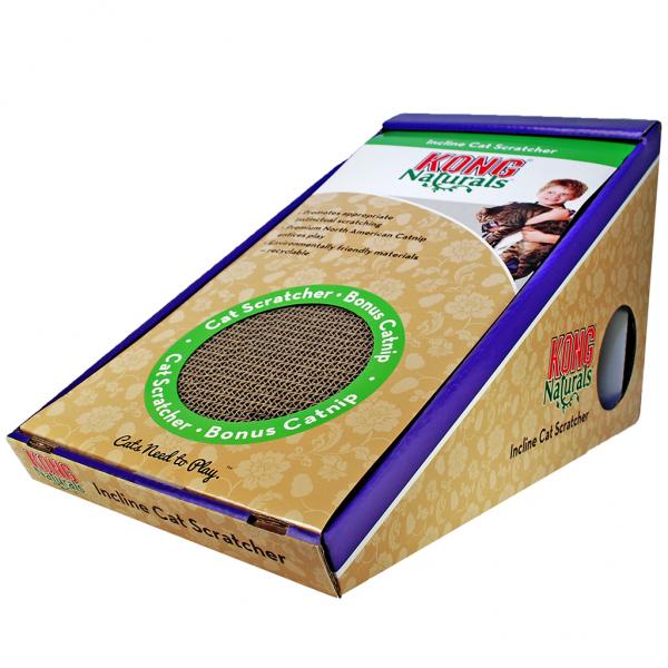 KONG Naturals Pop-Up Incline Scratcher is designed to fulfill cats’ natural scratching instincts for the self-soothing, stress-reducing experience that scratching brings—all while saving your furniture and rugs. The Pop-Up Incline Scratcher’s durable incline support easily converts to elevate the scratcher at an angle, or it can be kept flat, providing a scratching surface that encourages healthy muscle strengthening and daily stretching routines. A packet of KONG Premium North American Catnip, included with the scratcher, can be sprinkled to entice engagement and further enhance the experience. The sturdy and thick double-sided cardboard scratching surface can be flipped over to extend use twice as long. Made from environmentally friendly, renewable cardboard material that can be recycled at the end of its lifespan.