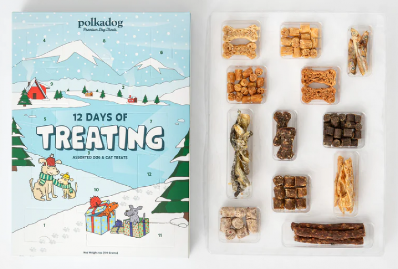 Your pup's new favorite holiday tradition is here! Make this holiday season one to remember with Polkadog's 12 Days of Treating Calendar! This extra special (& extra tasty) calendar is filled to the brim with Polka Dogs best-selling snacks, including Cod Skins, Chicken Strips, Wonder Nuggets, and more.