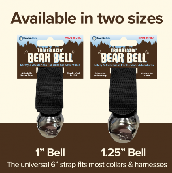 Introducing the latest innovation from Poochie-Pets: The Trailblazin’ Bear Bells. Expertly crafted to enhance your outdoor experiences, these bear bells are the perfect companion for any adventure with your furry friend. Designed with versatility in mind, they can be securely attached to any dog collar, harness, or walking/hiking gear, ensuring that your adventures into the wild are safe and sound. The Trailblazin’ Bear Bells are an essential accessory for outdoor enthusiasts and pet owners alike. They are designed to alert wildlife of your presence, eliminating surprises and keeping both you and the animals safe. For those who love off-leash adventures, these bells are a game-changer, allowing you to keep tabs on your dog’s whereabouts with the gentle jingle of the bell. Crafted with the highest quality materials, these bells are available in two sizes to suit your needs: a 1.25″ bell for larger gear and a slightly smaller 1″ bell. Each bell comes equipped with a secure adjustable slide buckle and heavy-duty Velcro for easy attachment and adjustment. Made in the USA, you can trust in the durability and reliability of these bells on even the most rugged trails. Safety is a top priority at Poochie-Pets, which is why all Trailblazin’ Bear Bells are lead-free and feature the iconic Poochie-Pets paw print insignia. This mark of quality ensures that you are getting a product that is safe for you, your pet, and the environment.