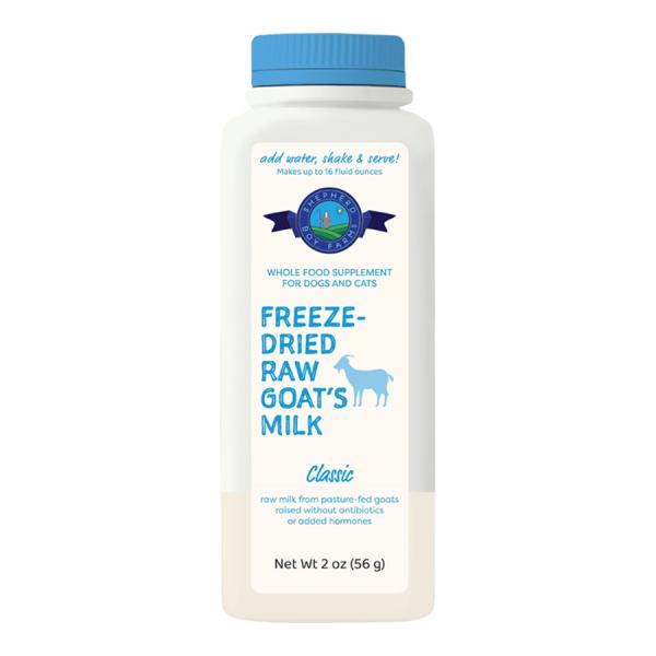 ALL-NATURAL GOAT MILK POWDER FOR DOGS & CATS. Pure milk from pasture-fed goats raised without antibiotics or added hormones, gently freeze-dried to preserve nutrients and flavor