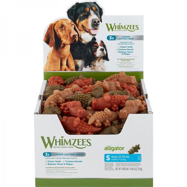 Introduce a new love of “brushing” with the fun shape of the WHIMZEES Alligator Dental Dog Treats. Totally edible and easily digestible, these vegetarian and all-natural treats help to freshen breath and reduce buildup on your dog’s teeth. They’re free of gluten so it’s a great solution for dogs with sensitivities, and they’re made with natural ingredients that include vitamins and antioxidants. Dental hygiene is as important for dogs as it is for humans, and Whimzees dog treats make it easy for dogs to clean their own teeth.